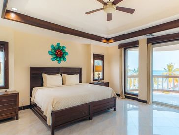 This elegantly decorated beachfront vacation home features five bedrooms and six bathrooms, and is furnished with a mix of imported and locally designed furniture using Belizean Mahogany and other indigenous hardwoods. The stylish interior and three entertaining areas make it a perfect